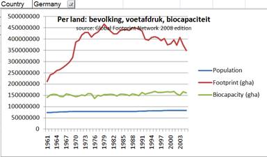 bevolking licht daalt. De voetafdruk heeft bij de val van de muur en het