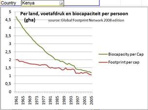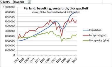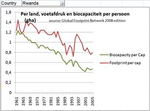 van Rwanda. De totale biocapaciteit is in een halve eeuw zelfs met een derde